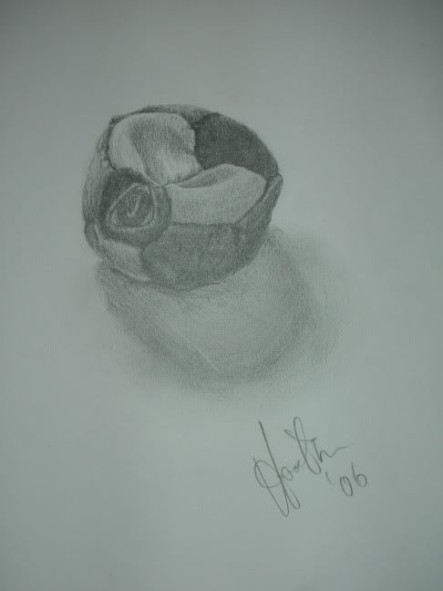 Hey guys, haven't been here in, like, foreva, ha just checkin' up on the sketches that keep me so entertained for moments first things first Comlock: Lookin' good, I sometimes wonder where you get your inspiration for some of those crazy drawings, looks like those were from a horse, obviously I love the one in the very bottom, that tiny little itty bitty one, it's definately the best haha next DW: Without knowing what the guy looks like, I can't really give it a decent crit. The only thing that bugs me, is the line under the eye, his cheekbone I assume. It just looks a little off to me, I dunno how, it just does, heh, I know that doesn't help much. But other than that it looks great! =D and then we came to Pillow: Is that you? :lol: haha, no, I kid you. yes, crits, right that type of shading is not a very good way to go. It's not that visually pleasing and seems a little sloppier than maybe chiaroscuro/modeling (traditional shading, with just using the pencil to create darker and lighter values and not smearing or smudging them). I would suggest to make it a little better, maybe go over it again with your pencil and don't smudge it, and maybe make a few areas darker to add some contrast into it. The breasts look a little flat to me. I don't mean small, I mean not 3d. They don't seem to have any weight to them, I did a quick little fix-boobjob =] Jemooky!:That looks AWESOME I love the contrast in it....I guess you already know about the anatomical flaws since you so stated in your post...I guess nothing really to say about it then, other than, it looks great. Hockman: I like the robot alot. I love that etchy style of shading you have. It's got a real old cartoony feel to it. Nothing really stands out to me as wrong in the picture, so keep it up! =] CLiNK: Those mostly look cartoony, so I can't really give them any crits, since, as Hockman said, "cartooning implies exaggeration," which is so true. Except on your hand, all I see that looks wrong to me, are the fingers and wrist. The fingers are kinda blocky, I dunno if you were going for that look or not. The wrist just looks a tad too skinny, Idunno, maybe you just have a thin wrist . But I like all those little sketches, especially that weird amorphous blob in the bottom right and the guy with the mile between his eyes in the top right. Man, long post, ha. I haven't done one that long in a while. Well I'm off to read The Scarlet Letter, if any of you are familiar with the book. Keep drawin' guys! they all look great! meh, I'll contribute a few of my own drawings I've been doing as of late. You are the Pearl of My Heart (that's what it says around the heart) it's a little something I did for this girl I kinda have a crush on, haha....oh highschool crushes Some people called it morbid. BAH! Not morbid in the least. haha.... oh, the weird stuff around the pearl (being the circle in the middle of the heart) is supposed to be stuffing, like you'd see in a toy bear and whatnot. The patch with the hand stitching it on represents her healing an emotional scar I had. And the arrow signifies love. I believe that's all the symbolism in there...mhmm.. I've done more to it since then, but I haven't taken a picture of it yet and uploaded it. maybe another time =] Hacky-sack Yes, it is a hacky-sack, and I AM aware it looks a bit like a deflated soccer ball. Though the hacky sack itself is in the style of a soccerball.... Just got bored one day and drew it in english class....took about a half hour or more....not too long. that's all, crits are always greatly appreciated =] |