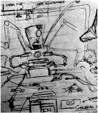 ![]() A little Explanation, if you don't mind: This is a Previs of a secondary character from what I hope will be my next animation. He's a shop-keeper at a general store, and he is a clockpunk style robot. It is VERY incomplete, as he is actually supposed to be connected to the store itself through various arms and cogs. You might think of it as the store being the actualy robot, and the shopkeep is actually just a humanoid face to identify with. I was excited to start working on this, as it was the one image the convinced me to start production on this movie. It came to me late at night for about 3 seconds, and I scrambled for pen and paper so I could sketch him as it was swiftly fading from my imagination. So right now, I need suggestions on the concept, and how I can seperate him from his background. Any shots with him will be VERY busy, as there will be a lot of mechanisms working behind him, and I don't know how I will do this. Probably something to do with making him a brighter colour. Any suggestions on depth would be nice. And I know I won't be able to pull of those crazy textures. Besides being distracting, it would murder the flash player. I don't like murdering.... usually. I used them here to help me get a sense of the materials. And on the note of textures: Thanks Humble Sorry for the long-winded explanation. Thoughts? Edit: More related pictures: http://img.photobucket.com/albums/v507/sma...pkeepsketch.png http://img.photobucket.com/albums/v507/sma...owboysketch.png http://img.photobucket.com/albums/v507/sma...ard/Cowboy4.jpg |