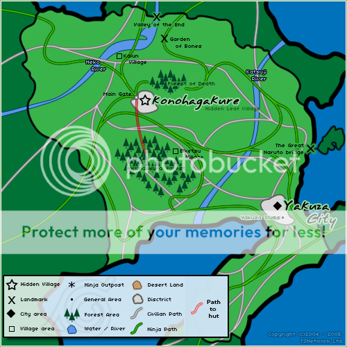 Enquanto Gyatso olhava, Oshi se vira e fita a paisagem pela janela. O hokage parecia pensar, ou lembrar de alguma coisa. Gyatso fica indeciso ao que fazer, até que o líder de Konoha se vira novamente, com uma feição muito séria e um olhar que até chegava a ser assustador. O Hokage começa a falar, e Gyatso sente aquilo como se fosse um desabafo. O jovem Inuzuka percebeu que Oshi se importa com os moradores da vila, e por mais que ele se faça de durão ou mantenha uma seriedade quase sufocante, existe uma criança lá dentro dessa pessoa, que ainda gosta de sorrir e brincar, e que se preocupa com as pessoas que ama. Mas Gyatso também percebe que há um problema: Oshi ama todos daquela vila, e se preocupa com a miserável vida de cada um, por isso ele se sente muitas vezes triste e sozinho, porque a cada dia pessoas morrem, por mais que este segredo seja silenciado, Oshi sabe que muitos que se arriscam em sair de sua casa para buscar seus sonhos morrem e aqueles sonhos acabam se perdendo no meio do caminho. Por isso ele exita em dar a maldita permissão para crianças, que nem sabem ainda o que querem da vida, mas ainda sim ele confia em sua vila, e em seus parceiros que preparam essas crianças, e assim, o hokage enfrenta seus dilemas diariamente, misturados com o árduo trabalho de comandar a vila para tentar dar - o mínimo que seja - mais segurança para cada um daquele lugar. Enquanto Oshi falava, fazia algumas perguntas que nem precisavam ser respondidas, mas que mesmo assim Gyatso balançava a cabeça, confirmando ou discordando. Em um momento Oshi para de falar e parece estar refletindo em algumas coisas, e quando parece que ia voltar a falar, ele se levanta e anda até uma prateleira. Lá ele vasculha em meio a vários papéis, até que volta trazendo um pergaminho, tornando a falar. Urikoshi - Gyatso voc admirvel devo falar Acredite eu sei bastante sobre voces por isso vou lhe entregar esse mapa Gyatso se sente um pouco envergonhado, mas o orgulho vencia a vergonha. Ouvir aquelas palavras do Hokage eram mais do que uma honra. Oshi parece exitar mais um pouco, mas depois de alguns segundos ele entrega o pergaminho a Gyatso. O coração do gennin começava a bater mais forte, e a cada momento em que o pergaminho chegava mais perto de sua mão ele se sentia mais excitado. E quando isso finalmente acontece... A vontade do garoto era de abrir o pergaminho e ver logo quais localizações continham no mapa. O garoto se segura um pouco para aumentar a ansiedade e a excitação, mas chega a um momento em que ele abre o pergaminho rapidamente e olha o seu segredo. Havia um mapa normal de Konoha, e todo aquele overdose de sentimentos quase morreram de uma vez. Gyatso já vira muitas vezes aquele mapa na academia ninja, porém nunca teve um, e ter posse de um desses com certeza seria algo interessante. Enquanto Gyatso admirava o mapa, Oshi assinava a liberação, e ao terminar de fazê-lo toma o mapa de Gyatso, lhe dando a liberação e explicando a utilidade dela. Enquanto falava Oshi chama a secretária pelo telefone. Em segundos ela aperece. Oshi dá umas ordens a ela, e esta começa a fazer. Quando a jovem entrou, Gyatso apenas deu um sorriso acenando brevemente com a cabeça. A mulher traça um caminho até a "cabana oculta". Em seguida ela faz uns selos e a tinta começa a desaparecer. O hokage lhe explica que ele teria que fazer para a tinta se revelar, e entrega o pergaminho ao menino. Em seguida ele completa a reunião com palavras firmes, porém era notável que Oshi se importava com Gyatso e com seus objetivos. -Muito obrigado Oshi-sama! Por tudo! Eu não deixarei que esse mapa caia em mãos erradas. Até mais! Quando eu voltar eu volto para te encontrar... ^^ -Auau!!! Gyatso faz uma reverência e sai da sala, botando o mapa e a autorização em sua bolsa ninja de cintura. Ele vai diretamente para casa correndo. Quanto antes saísse da vila, antes chegaria ao seu destino. Quando o garoto chega, seus pais ainda estavam em casa. Eles queriam fazer uma surpresa para o garoto. Como já haviam comido mais cedo, eles só se despediram mesmo. Sua mãe desabrochou a chorar, seu pai mostrava o orgulho em seus olhos, e todos os cães uivaram ao mesmo tempo no momento que Gyatso ia sair. O garoto havia pegado mais três mudas de roupas quase iguais ao que estava usando. Sua mãe havia lhe preparado 6 "caixinhas de comida da mamãe", contendo bolinhos de arroz, sushi, sashimi, e ramén. Ele levava tudo em sua mochila, além de levar também um lençol, e seus equipamentos básicos, sendo tudo o que tinha. Gyatso e Apamaru saem de casa e vão andando até o portão de Konoha que era virado para a "cabana oculta". Lá ele mostra a permissão para os guardas, dando-lhes um "Bom dia!". Gyatso passa e anda até a floresta, lembrando-se brevemente de alguns acontecimentos em sua vida, na última semana na vila.