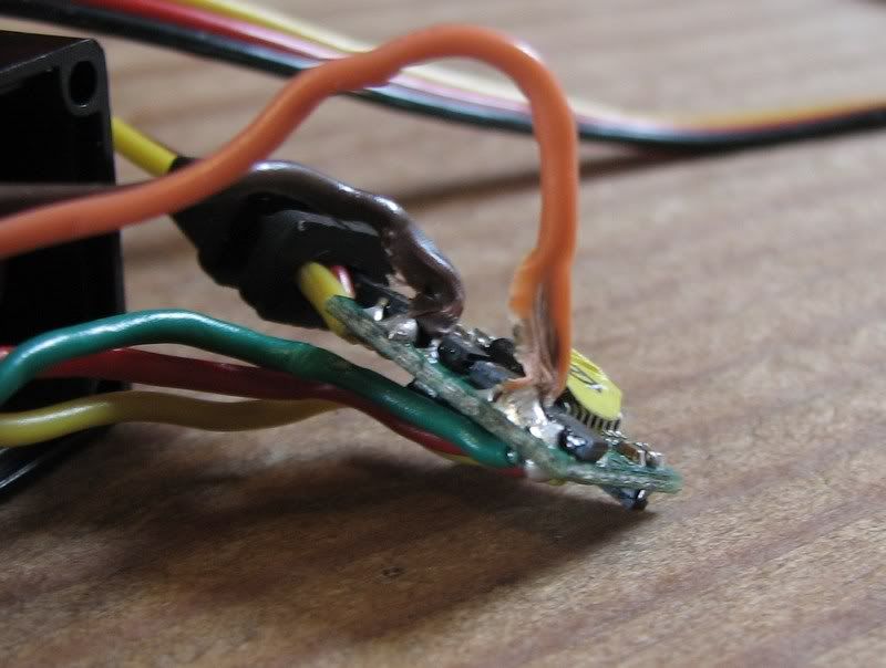 So far the dig unit is working fine. I have had it get hung in lock or 4wd maby twice, had to take a reverse to get it back working. Overall it is working smooth. But the big problem is the servo. Posted Image It was running at 6V. This also happened after driving for maybe 20 mins. The circuit board is enclosed in some thick shrink wrap inside the servo case. It got hot enough to melt the motor wires, brown and orange. It also melted the solder joint on the orange wire bridging it with another solder joint. The servo case was barely warm to the touch. Aaugman has fried 1 if not 2 servos. Fish spoke with the guys at VF and they said all of their prototype testing was done using 5v. |