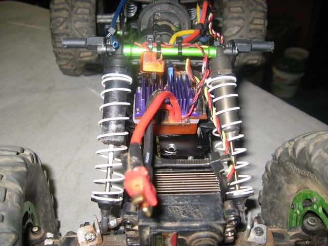 Well, it is always better to have a light rear end, and a heavy front end for when you go steep. My truck for instance, has a 7 cell saddle pack on the front and the electroncis are all mounted front the rear shockmount and forward. My truck can climb up a wall and sit almost paralell. |