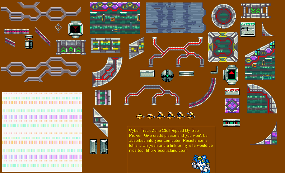 I checked all of the sites in the Sprite Resources thread, and none of them had a sheet of the Cyber Track BG and its objects. (From Sonic Advance 3) Does anyone happen to have that? (Or know a site where I can get it?) |