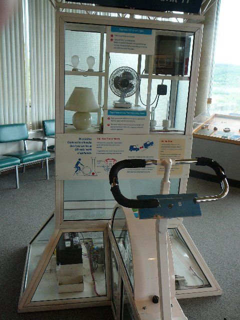We visited the Bennett Dam just over in BC where they have a nice visitor center that includes a pedal powered generator . . . Posted Image I was able to run the two 60 watt bulbs plus the fan for several minutes - not long enough for a TV show. |