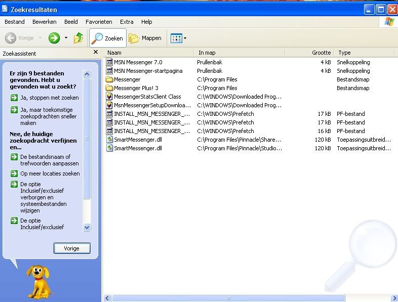 Krijg je een foutmelding als je ze verwijdert? Probeer eerst alle draaiende MSN-processen te stoppen. Druk Ctrl-Alt-Del in en kies voor Task Manager en daarbinnen voor processen. Klik elk proces aan met MSN of Messenger in de naam en klik op "End Process". Als je dat hebt gedaan kun je waarschijnlijk de bestanden wel verwijderen. Overigens zitten de eerste twee bestanden al in je prullenbak, dus daar hoef je niets aan te doen. De laatste twee hebben niets met je MSN te maken, maar met Video- of Foto-bewerkingsprogrammatuur. Die kun je ook overslaan. Als je nog niets kunt verwijderen, dan moet je controleren of je gebruikersaccount binnen XP adminstrator-rechten heeft. Zo nee, log dan aan als Administrator. |